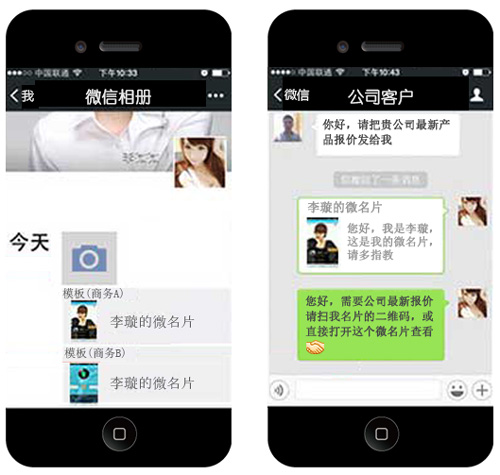 微名片更适合营销 选择微名片不代表放弃传统名片,微名片的二维码可印在纸质名片上,客户扫二维码轻松获取名片信息